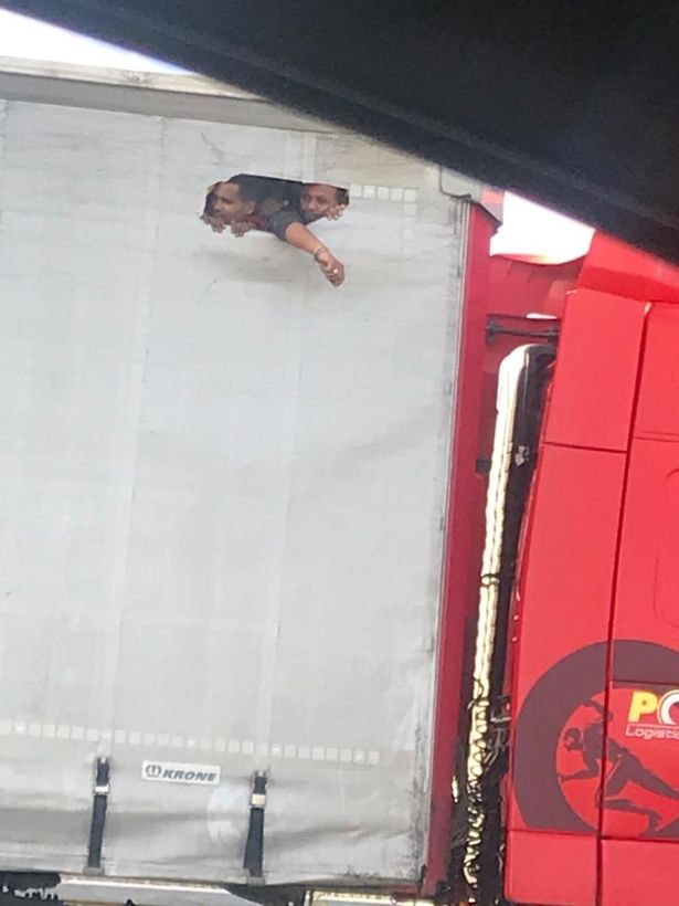 Bức ảnh được một người lái mô tô chụp trên đường cao tốc M25 mô tả hình ảnh những người di cư tuyệt vọng ngó ra bên ngoài, tranh thủ hít thở qua một lỗ nhỏ được khoét bên hông xe tải.