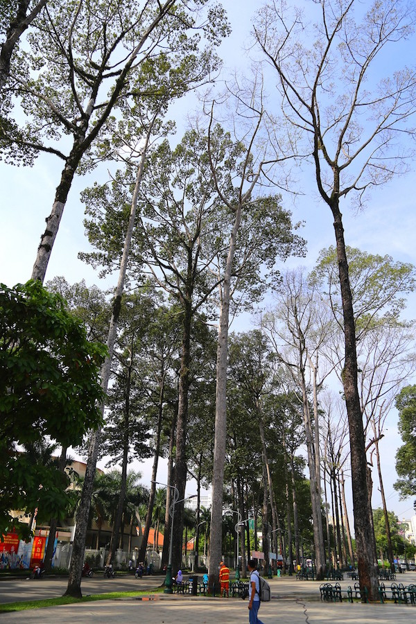“Sáng nào tôi cũng ra công viên tập thể dục, nhìn hàng cây chết dần thấy buồn quá, toàn cây cổ thụ lâu năm. Tôi nghĩ rằng việc bê tông hóa công viên đã tạo cảnh quan sạch sẽ, môi trường trong lành, giảm các tệ nạn. Nhưng cũng chính việc này đã ít nhiều ảnh hưởng đến cây xanh” - ông Trần Duy Tuất (85 tuổi, ngụ quận 5) chia sẻ.