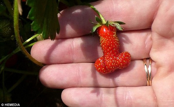 Trái dâu tây có hình dáng "cái ấy" chỉ bé bằng đầu ngón tay