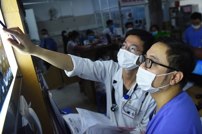 Bác sĩ làm việc tại khoa Hồi sức cấp cứu, Bệnh viện Bạch Mai. Ảnh: Giang Huy.