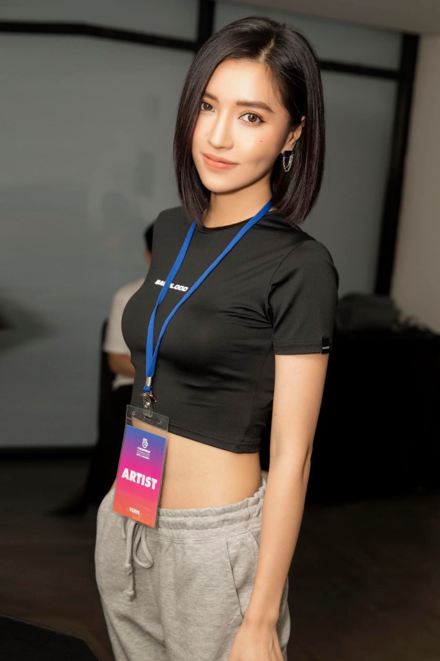 Trong một dịp khác, tập duyệt chương trình, Bích Phương tiếp tục khoe vòng eo phẳng với áo croptop có tay ngắn. Áo chất thun đơn giản, có độ ôm cơ thể giúp người mặc khoe được đường cong cơ thể mềm mại.