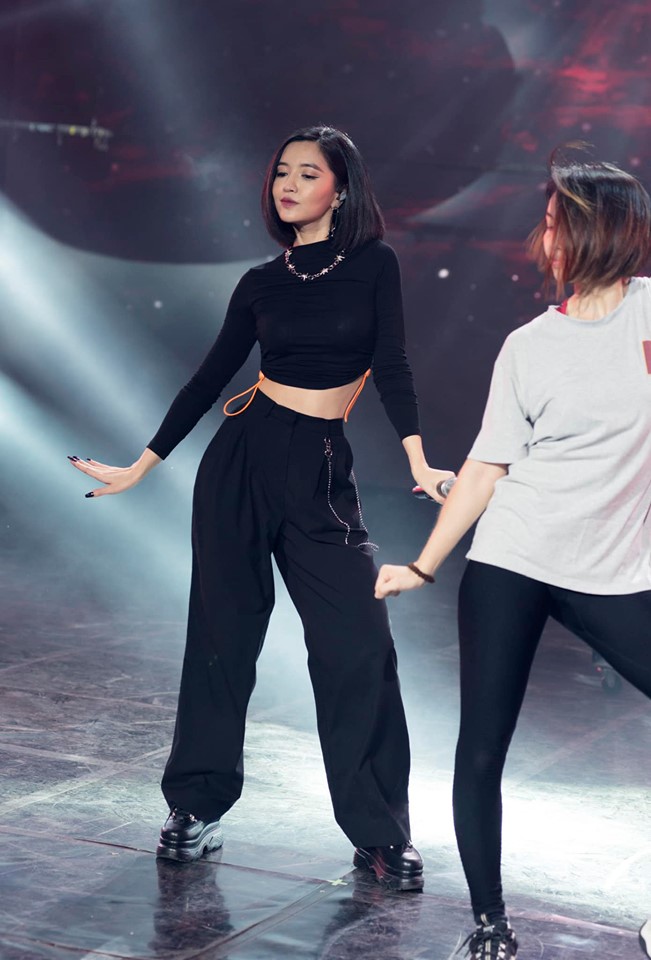 Áo thun dáng croptop dài tay màu đen hay những màu đơn sắc đều giúp người mặc gọn hơn. Cách lên đồ đơn giản, chất chơi của Bích Phương chưa khi nào khiến người hâm mộ thất vọng.
