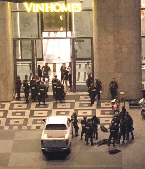 Toà nhà Landmark 81 khi cảnh sát có mặt. Ảnh: Người dân cung cấp.