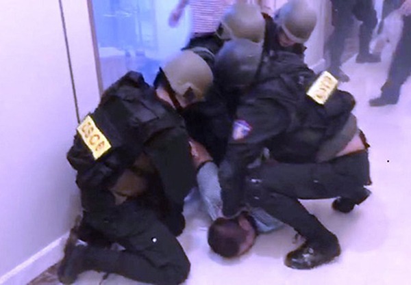 Cảnh sát cơ động khống chế Đạt. Ảnh: K.T