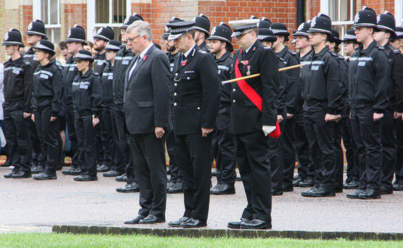Cảnh sát Essex cúi đầu dành một phút mặc niệm cho các nạn nhân ngày 1/11. Ảnh: Essex Police.