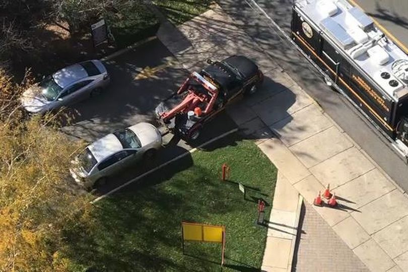 Chiếc xe xảy ra án mạng đang bị cảnh sát đưa khỏi hiện trường.