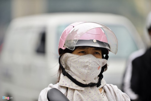 Nhiều người đi tập thể dục ven Hồ Tây phải dùng khăn bịt kín miệng.