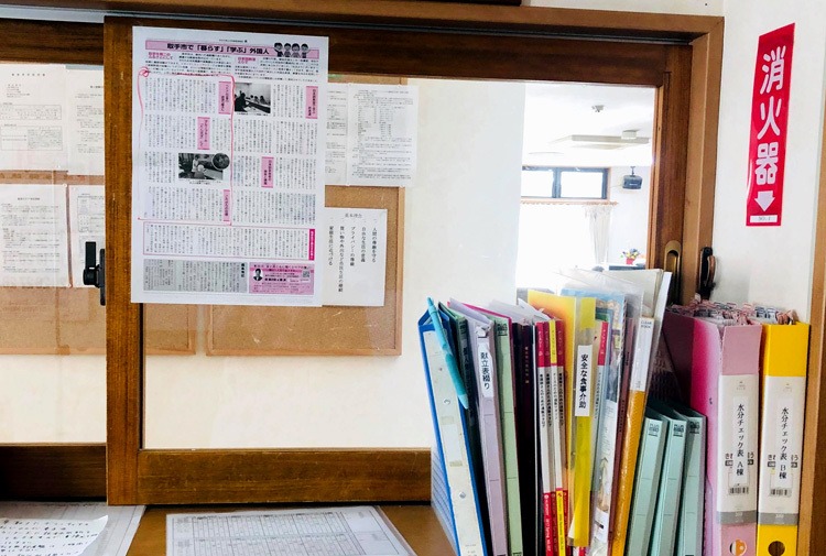 Bài báo viết về Lương Thị Thuận được dán lên văn phòng tại Viện dưỡng lão Tanpopo, nơi Thuận đang công tác. Những ngày qua cô được xem như 'thần tượng' ở cơ quan. Ảnh: Mỹ Thuận.