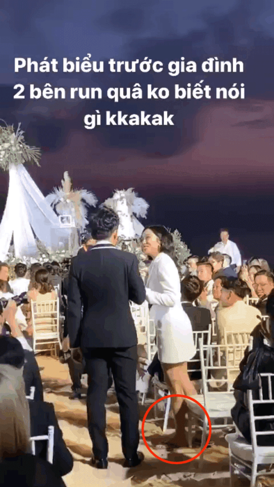 Hình ảnh các khách mời nữ chật vật trong khoản đi lại là biết ngay do cát lún đi chân trần còn vất vả huống chi là những đôi lênh khênh như vậy, cho nên dàn khách mời hãy rút kinh nghiệm tại đám cưới Đông Nhi, là mỗi khi có đự đám cưới ngoài bờ biển tốt nhất là để giày gót nhọn ở nhà.