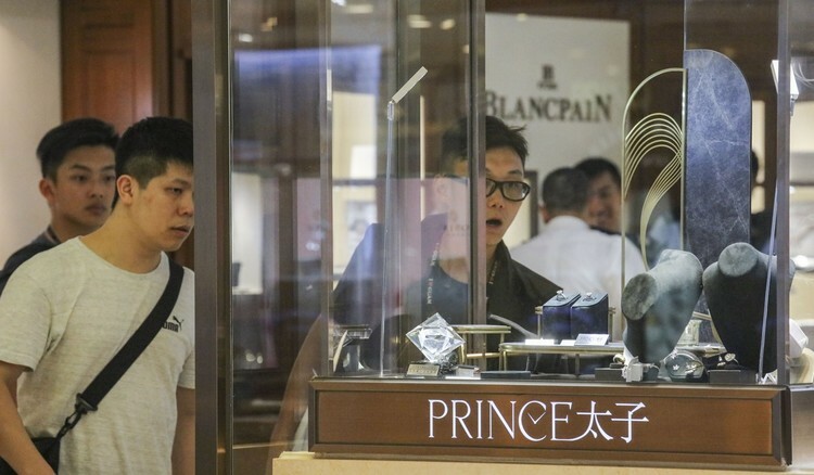 Người dân mua sắm trong tiệm trang sức và đồng hồ Prince ở Harbour City, Hong Kong. Ảnh: SCMP.