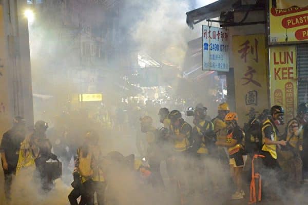 Tại Tsuen Wan Hồng Kông ngày 10/11/2019, cảnh sát đã bắn hơi cay vào các phóng viên và dân chúng (Hình: Epoch Times).