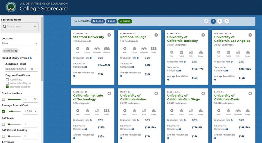 Thông tin về các mức lương trung bình cho từng ngành trước đây vẫn có, nhưng để gom lại tất cả các trường học theo từng ngành, từng tiểu bang, từng khu vực, từng mức học phí, và mức lương trên cùng một trang web thì đây là lần đầu tiên Bộ Giáo Dục Mỹ thực hiện. Điều này giúp ích rất nhiều cho sinh viên, gia đình và người đóng thuế.