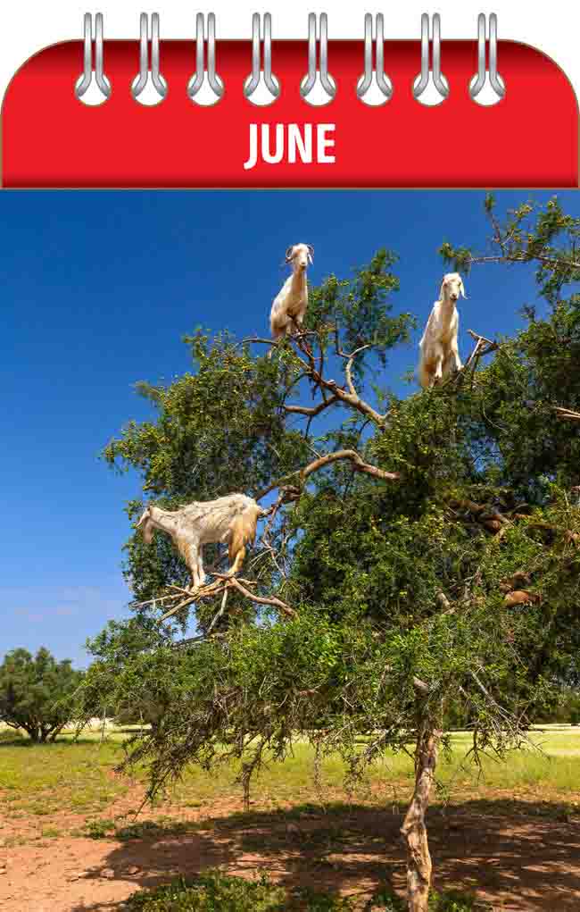Dê trèo cây là hiện tượng có vẻ siêu thực nhưng lại hoàn toàn hợp lý. Những cây mà dê leo lên là cây argan có quả chín vào khoảng tháng 6. Dê đói bị thu hút bởi những quả chín này và cố gắng leo lên cây để tìm đồ ăn.