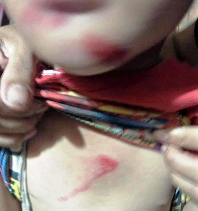 Một số hình ảnh cháu T. bị mẹ ruột đánh dã man trên các trang mạng xã hội facebook: