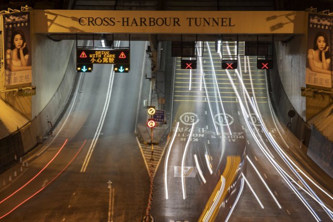 Hầm đường bộ vượt biển nối đảo Hong Kong với phần còn lại của Hong Kong. Ảnh: AP.