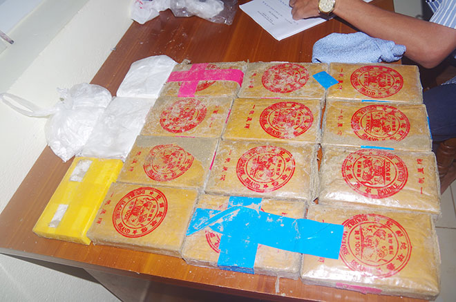 “Can nhựa này đã được khoét đáy, trong can có nhiều bọc ni lông màu vàng, chữ đỏ, đựng chất bột màu trắng. Nghi là heroin nên tôi đã cầm một gói lên Đồn biên phòng Tam Thanh trình báo. Sau đó tôi tiếp tục đến bờ biển lấy 8 gói còn lại đem giao nộp...”, anh T kể lại.