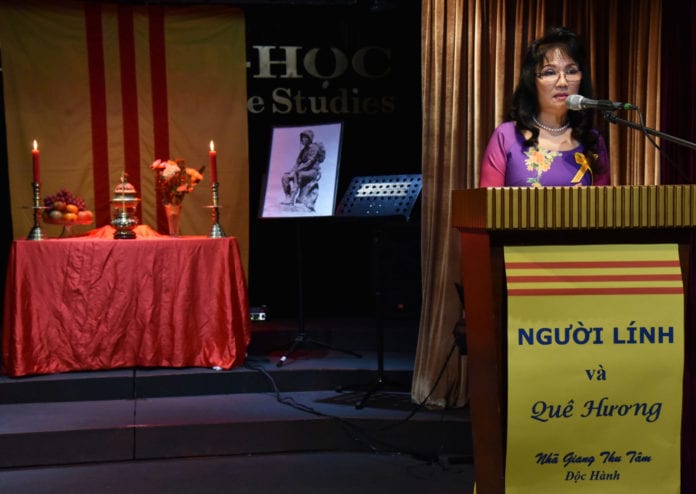“Trong cuộc chiến, người lính rất khổ nhưng ngày xưa, cha tôi, và ngay cả chồng tôi, những chiến sĩ Quân Lực VNCH, cũng chưa bao giờ kể về sự gian khổ của đời lính chiến đấu như thế nào. Bởi vì với người lính, đó là ‘Tổ Quốc-Danh Dự-Trách Nhiệm,’ chiến đấu là một trách nhiệm mà tất cả những quân nhân Quân Lực VNCH luôn ghi nhớ,” nhà văn Nhã Giang Thu Tâm chia sẻ.
