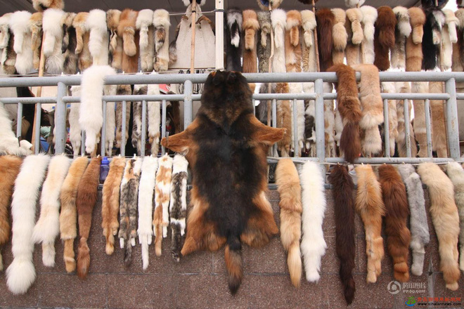 Lông chó mèo được bán tràn lan trên đường phố Trung Quốc.
