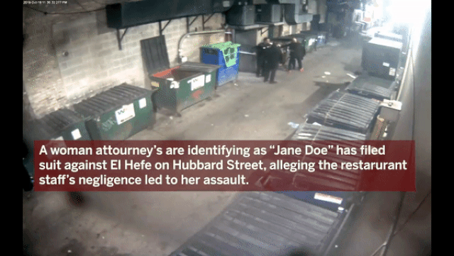 Đoạn video được camera giám sát ghi lại tại một con hẻm phía sau quán bar El Hefe nổi tiếng ở khu vực River North thuộc thành phố Chicago, Mỹ. Hình ảnh từ camera cho thấy, hai bảo vệ đã mở cửa phía sau cho nạn nhân và nghi phạm ra ngoài.
