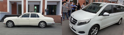 Điểm chung của hai người là đều đến tòa trên những chiếc xe hạng sang - siêu sang. Ông Vũ đi Bentley, còn bà Thảo đi Mercedes-Benz V 250.