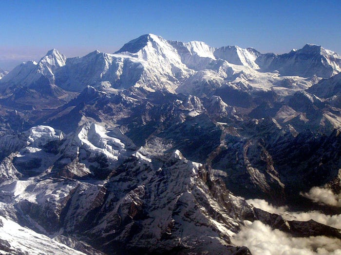 Đỉnh núi Everest là điểm cao nhất trên Trái đất, với độ cao 8.848 m so với mặt nước biển. Độ cao trên 8.000 m được coi là vùng “tử thần” vì áp suất không khí ở đó chỉ bằng 1/3 so với ở mặt biển. Con đường chinh phục đỉnh núi này rất gian nạn, nhưng vẫn thu hút rất đông du khách tới đây hằng năm.