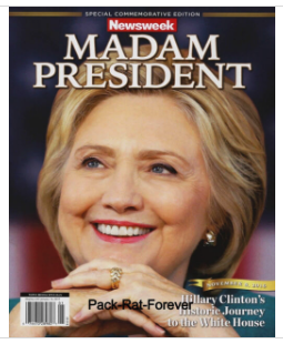 Trong kỳ bầu tổng thống năm 2016 vừa qua, TTDC tin chắc hơn đinh đóng cột là bà Hillary sẽ đại thắng. NEWSWEEK chơi trội, đúng ngày cử tri còn đứng xếp hàng chờ bỏ phiếu, phát hàng ngay số đặc biệt chào mừng bà tân tổng thống Hillary Clinton.