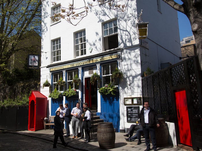 Nằm tại quảng trường Belgrave và gần Cung điện Buckingham, quán bar Grenadier phục vụ các món ăn truyền thống của người Anh như cá, khoai tây chiên và thịt bò. Tòa nhà được xây dựng vào năm 1720 và từng là văn phòng của quân đội Anh.