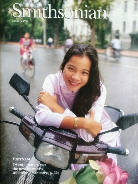 Một vẻ đẹp khác ở Việt Nam mà Catherine phát hiện là vào năm 1994, khi cô tìm ảnh minh hoạ cho bài viết của cha mình, nhà báo Stanley Karnow. Catherine muốn tìm một cô gái Việt đẹp tự nhiên, có thể lên trang bìa, nhưng không phải người mẫu. Khi thấy một cô gái trẻ đi xe máy trên phố, Catherine nhận ra đây chính là người mình cần tìm và lập tức chạy xe theo, đề nghị chụp hình. Họ dành hẳn một ngày khác để chụp và Catherine đã có bức ảnh trang bìa như mong muốn. Cô gái tên là Hà Minh Thu, 24 tuổi, từng là kế toán và có một cửa hàng bán các sản phẩm từ nhựa.