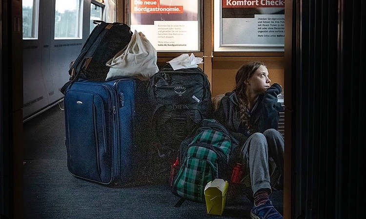 "Đang đi trên chuyến tàu quá đông đúc qua Đức. Cuối cùng tôi cũng trở về nhà", nhà hoạt động môi trường nhí Greta Thunberg hôm qua đăng lên Twitter, kèm theo bức ảnh ngồi bệt trên sàn tàu hỏa cùng ngổn ngang hành lý bên cạnh.