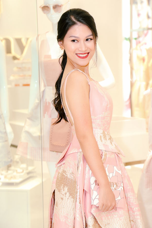 Nữ diễn viên trẻ lựa chọn màu hồng nữ tính làm tông màu trang trí chủ đạo. Ngoài ra có xen kẽ màu ghi và xám.