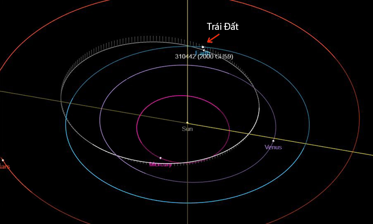Quỹ đạo của Trái Đất và tiểu hành tinh 2000 CH59. Ảnh: Time Now News.
