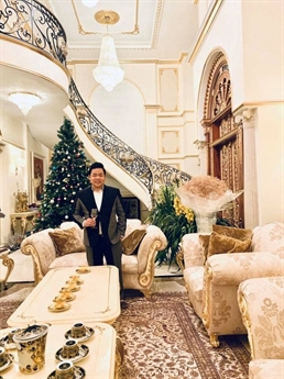 Mới đây, nhân dịp Giáng sinh, Quang Lê đã khoe ngôi biệt thự hoành tráng như cung điện với gam màu vàng chủ đạo của mình. Nam ca sĩ trang trí một cây thông lớn ở giữa phòng khách. Cả căn phòng lung linh, lộng lẫy nhờ dát vàng.
