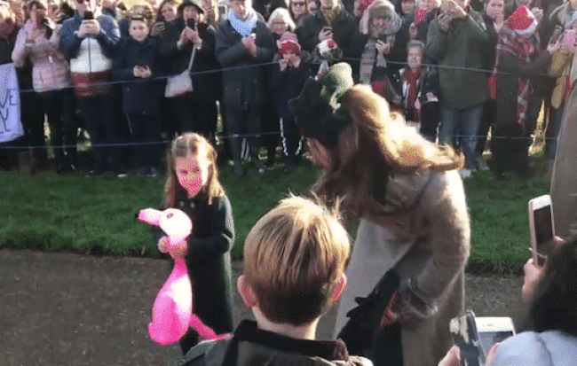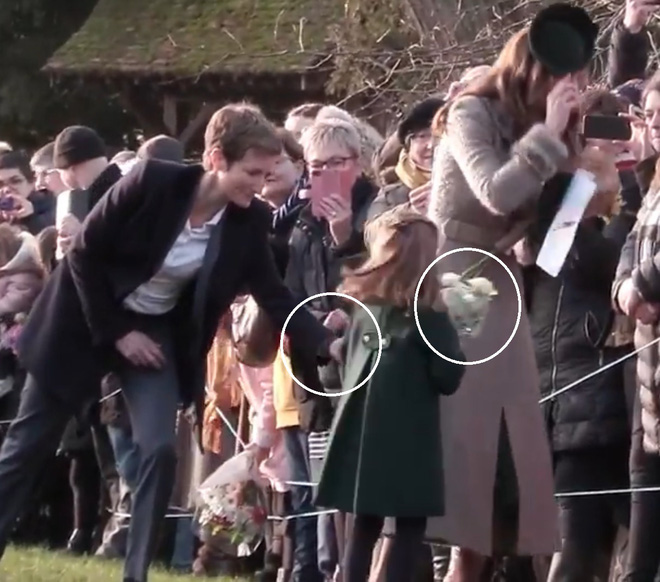 Một cậu bé 6 tuổi tặng Công chúa Charlotte một bó hoa, khiến Công chúa giữ chặt bó hoa của fan nam nhí không buông, còn tất cả hoa và quà của người hâm mộ khác đều được đưa cho phụ tá, chỉ riêng bó hoa này mà thôi.