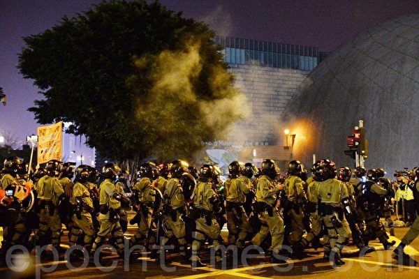 Cảnh sát Hồng Kông sử dụng lựu đạn hơi cay trên đường Salisbury tối ngày 24/12 (Ảnh: Epoch Times)