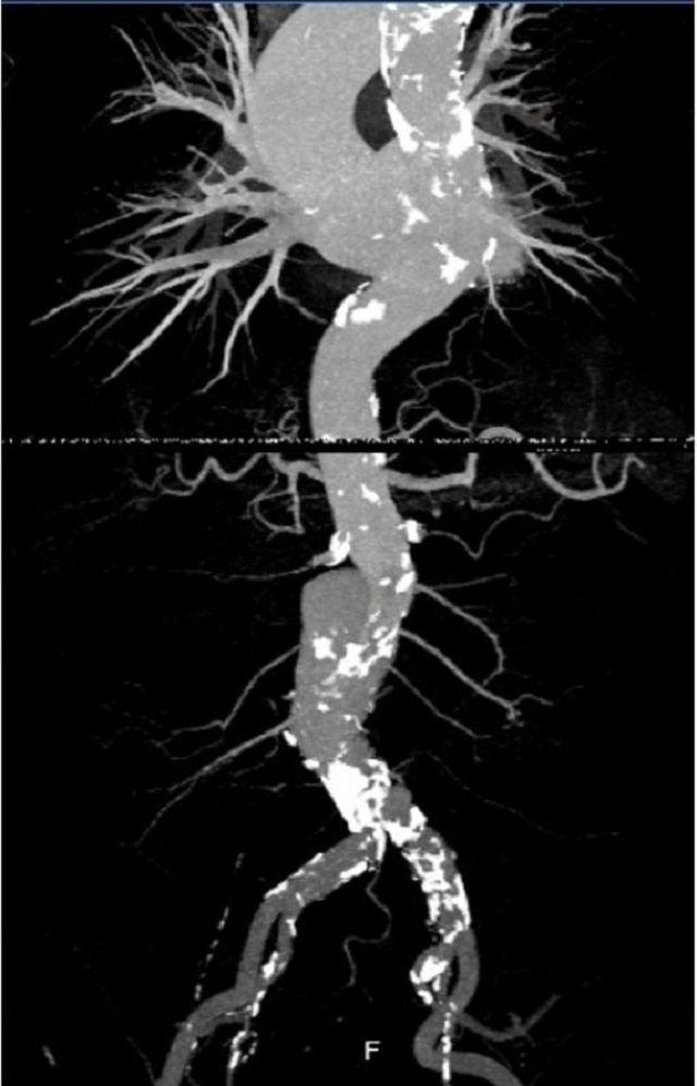 Hình ảnh động mạch chủ của người bệnh trên hệ thống chụp mạch máu xóa nền thời điểm trước can thiệp