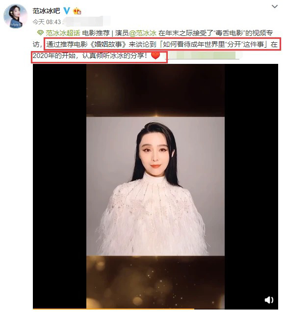 Phía Phạm Băng Băng đã bất ngờ chia sẻ video đề cử bộ phim điện ảnh mà cô nàng tâm đắc nhất trong năm 2019.