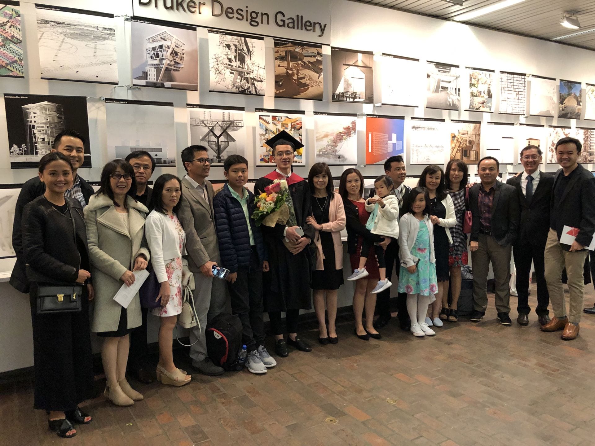 Khoa Vũ với đại gia đình trong ngày tốt nghiệp cao học kiến trúc tại đại học Harvard Graduate School of Design vào Tháng Năm, 2019. (Hình: Khoa Vũ cung cấp)