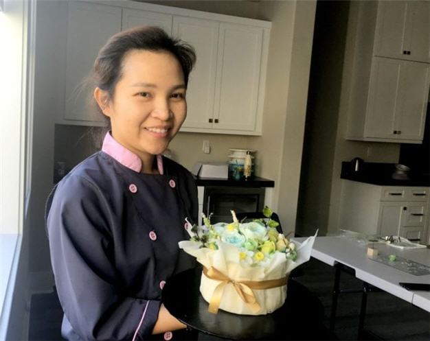 Tác giả của đóa hoa được làm bằng bánh và kem này là Diễm Hương, 30 tuổi, cựu sinh viên ngành tài chính trường Chapman University, hiện đang ở Irvine, Nam California.