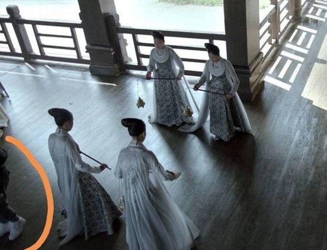 Thậm chí, diễn viên còn để lộ mang giày thể thao hiện đại trong phim cổ trang.