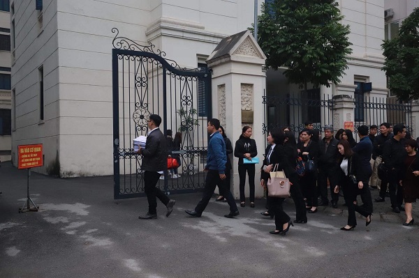 Đúng 7h, tài xế Doãn Quý Phiến có mặt tại TAND quận Cầu Giấy. 8h, bà Nguyễn Bích Quy – người đưa đón trẻ cũng có mặt tại tòa. Bà trùm kín mặt khi đi vào khu vực diễn ra phiên xét xử.