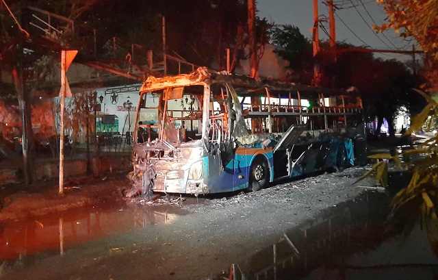 Xe khách bị cháy trơ khung vào tối 14/1.