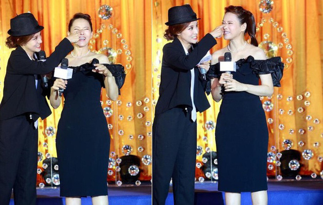 Đồng Lệ Á (trái) và Thẩm Mộng Thần cũng có chiều cao thực tế chênh lệch 1,2 cm so với hồ sơ công khai trên mạng.
