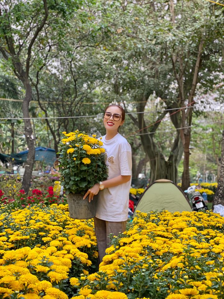 Hoa hậu Kỳ Duyên chọn trang phục giản dị đi chợ hoa Tết ngày cuối tuần. "Em bé đi chợ hoa Tết, năm nào cũng thế nhưng năm nay hứa là sẽ trưng hoa khắp nhà luôn", người đẹp chia sẻ.
