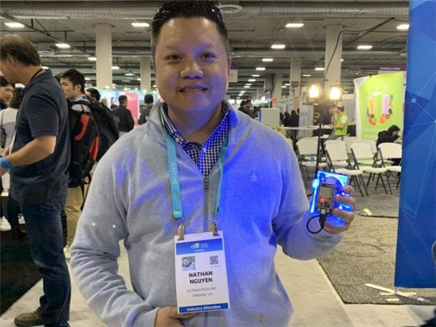 Đối với Nathan Nguyễn thì đây là lần đầu tiên anh đến CES. Anh là người sáng lập cũng là giám đốc điều hành của công ty UltraUVTech, Inc và cũng là người phát minh ra “đèn” LED dùng để tiêu diệt vi khuẩn trong thức ăn, nước uống hay vật dụng thường ngày như điện thoại cầm tay, máy tablet, xe hơi…