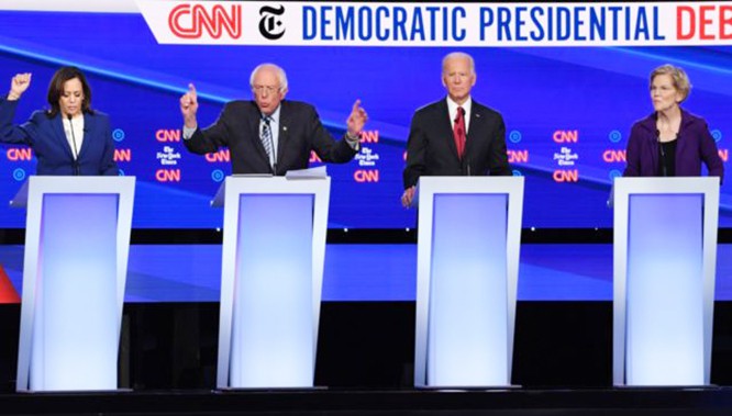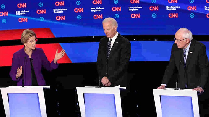 Thượng nghị sĩ Elizabeth Warren, cựu Phó Tổng thống Joe Biden và Thượng nghị sĩ Bernie Sanders, ba ứng viên hàng đầu để trở thành người so găng cùng Trump trong cuộc bầu cử Tổng thống tháng 11 tới.