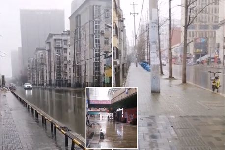 Một du khách người Mỹ ở thành phố Trung Quốc đã chụp được những cảnh kỳ lạ vào thứ Sáu chỉ một vài người lang thang trên những con đường vắng. Những hình ảnh cho thấy một ngôi trường bị bỏ hoang, một trung tâm mua sắm trống rỗng và chỉ có một cửa hàng tạp hóa nhỏ vẫn mở.
