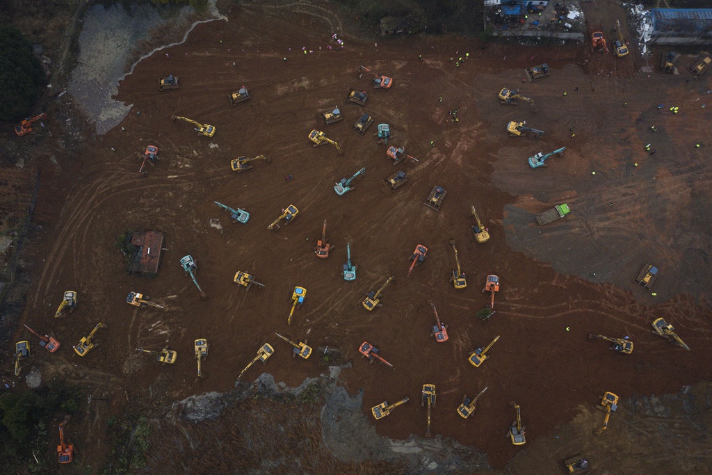 Hình ảnh chụp từ trên cao của công trường xây dựng bệnh viện dã chiến số 1 với quy mô 1.000 giường bệnh, dự kiến hoàn thành vào ngày 3/2 để giải quyết tình trạng quá tải tại các bệnh viện trên khắp thành phố. Ảnh: Getty.