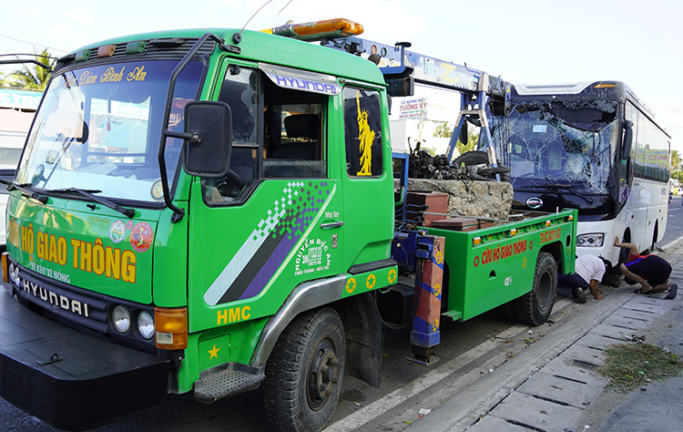 Xe cứu hộ cẩu chiếc xe bị nạn ra khỏi hiện trường. Ảnh: Hoàng Nam.