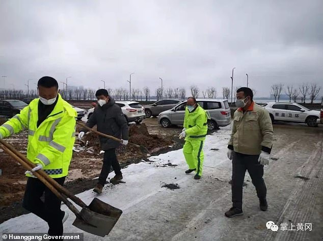 Công nhân và tình nguyện viên đã dành 2 ngày để hoàn thiện bệnh viện. Ảnh: Chính quyền Hoàng Cương