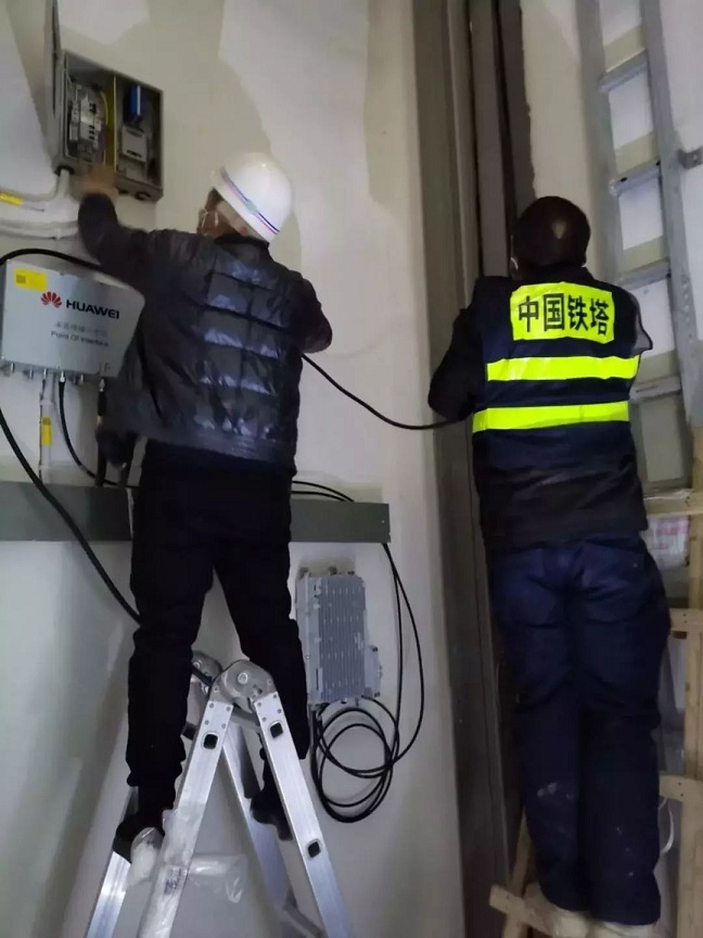 Các công nhân đang lắp đặt hệ thống cáp trong bệnh viện. Ảnh: Sina